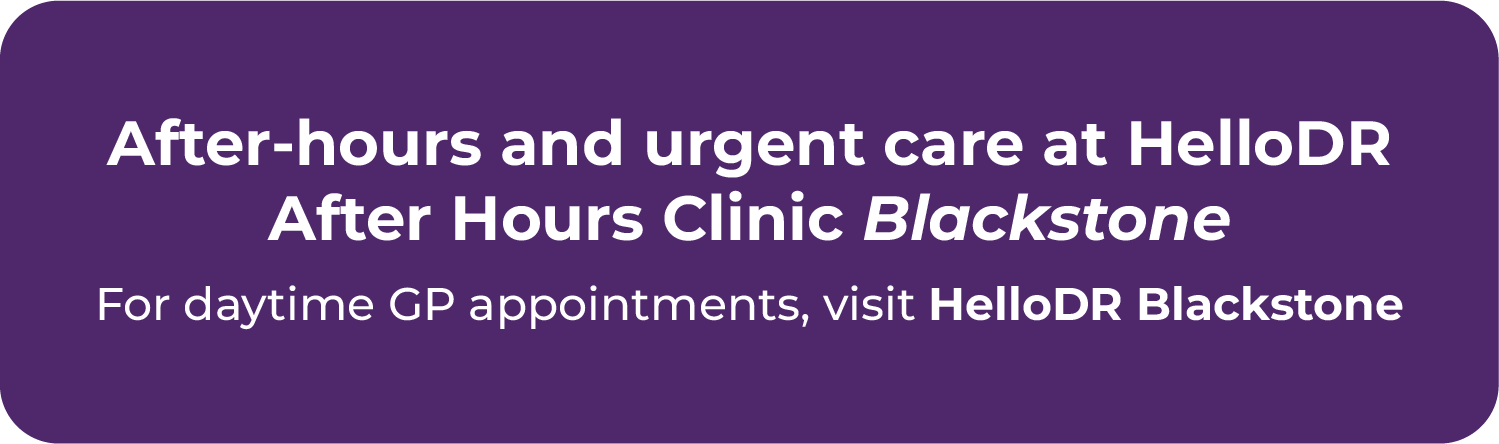 If you’re able to see a regular GP during the day, there’s no need to wait until the evening — appointments are available at HelloDR Blackstone for daytime care. Our HelloDR After Hours Clinic Blackstone is available when your GP is unavailable outside standard hours.